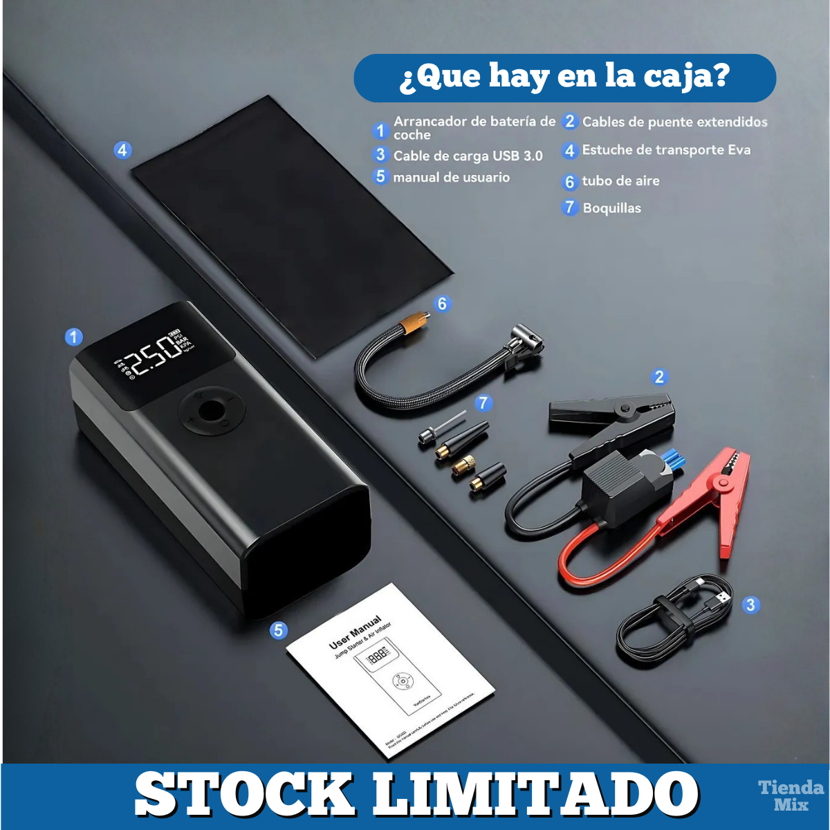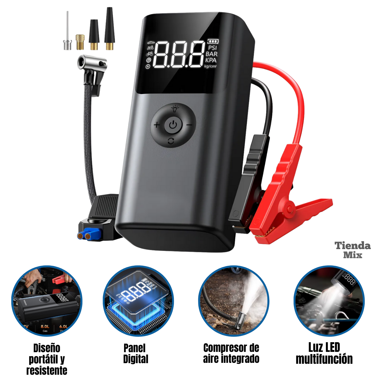 Funciones: Arrancador + Inflador + Cargador + Linterna LED