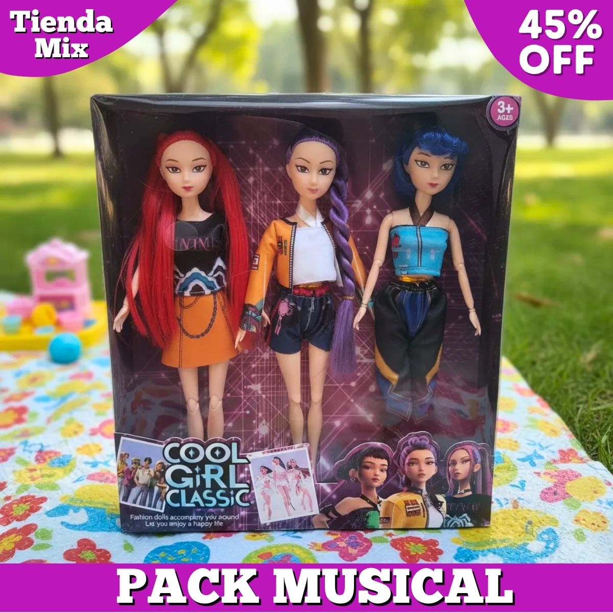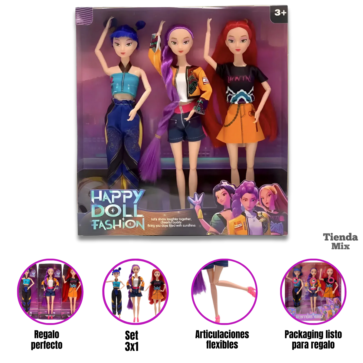 - Set de 3 muñecas estilo K-Pop – Guerreras Musicales