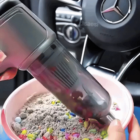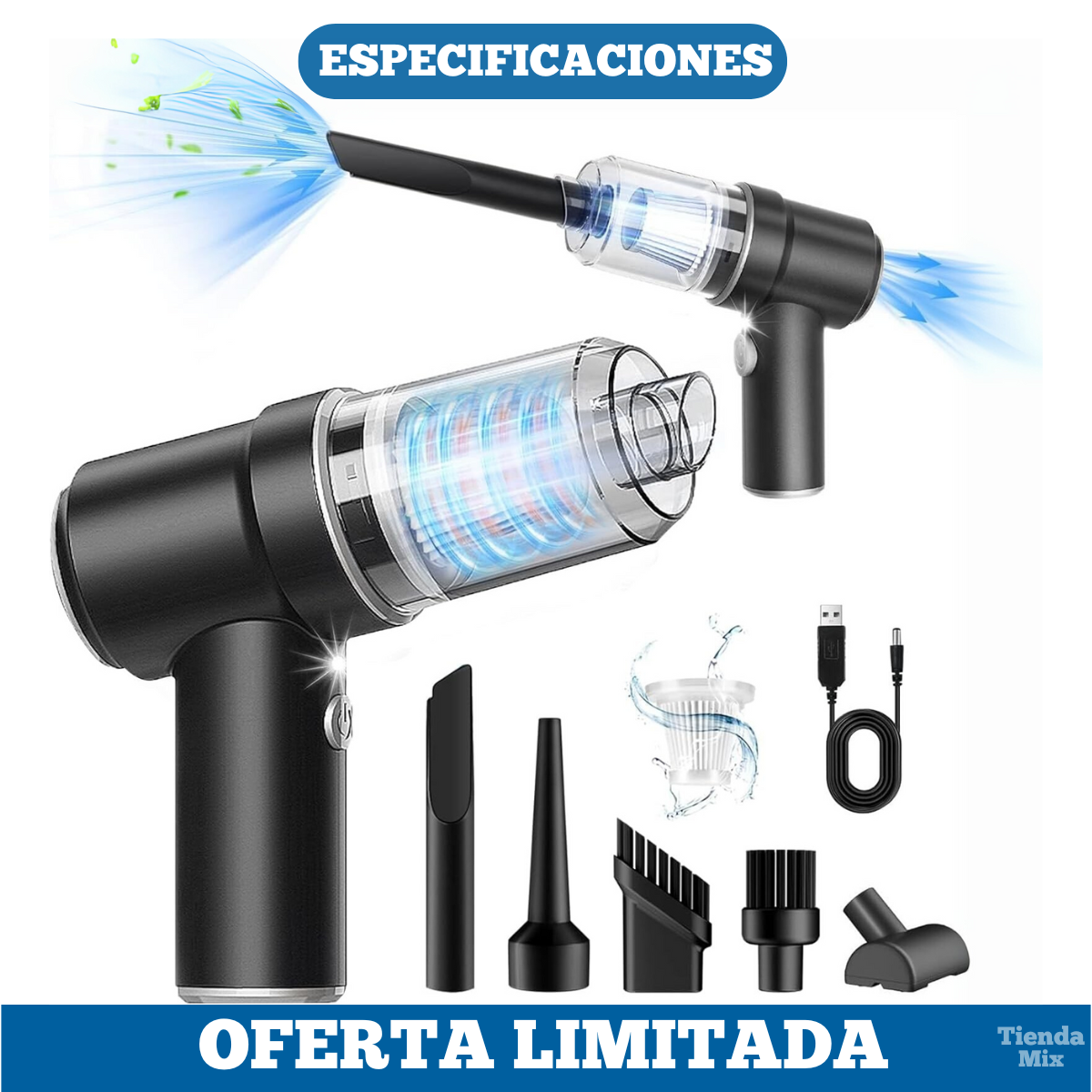 Mini aspiradora recargable: Pasa sobre polvo, migas y pelos; ideal para autos, muebles y tapices.